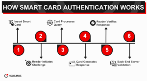 Smart card authentication is a method that employs the embedded chip in the card to verify the identity of the user certificates.