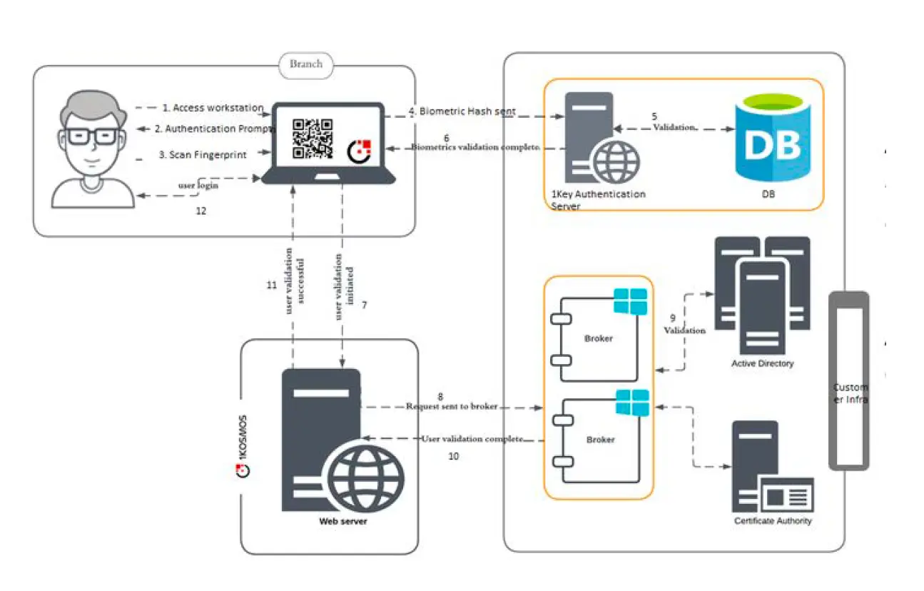 1Key delivers a convenient biometric authentication experience for shared workstations and multiple kiosk systems and supports interoperability across associated operating environments and business applications.