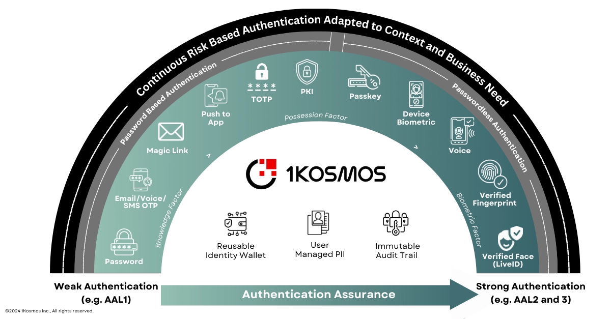 The 1Kosmos platform exhibits flexibility which allows service providers and their users to choose the authentication method that best suits their needs, thereby increasing the adoption of digital payments while maintaining high security standards with minimal friction to the user experience.