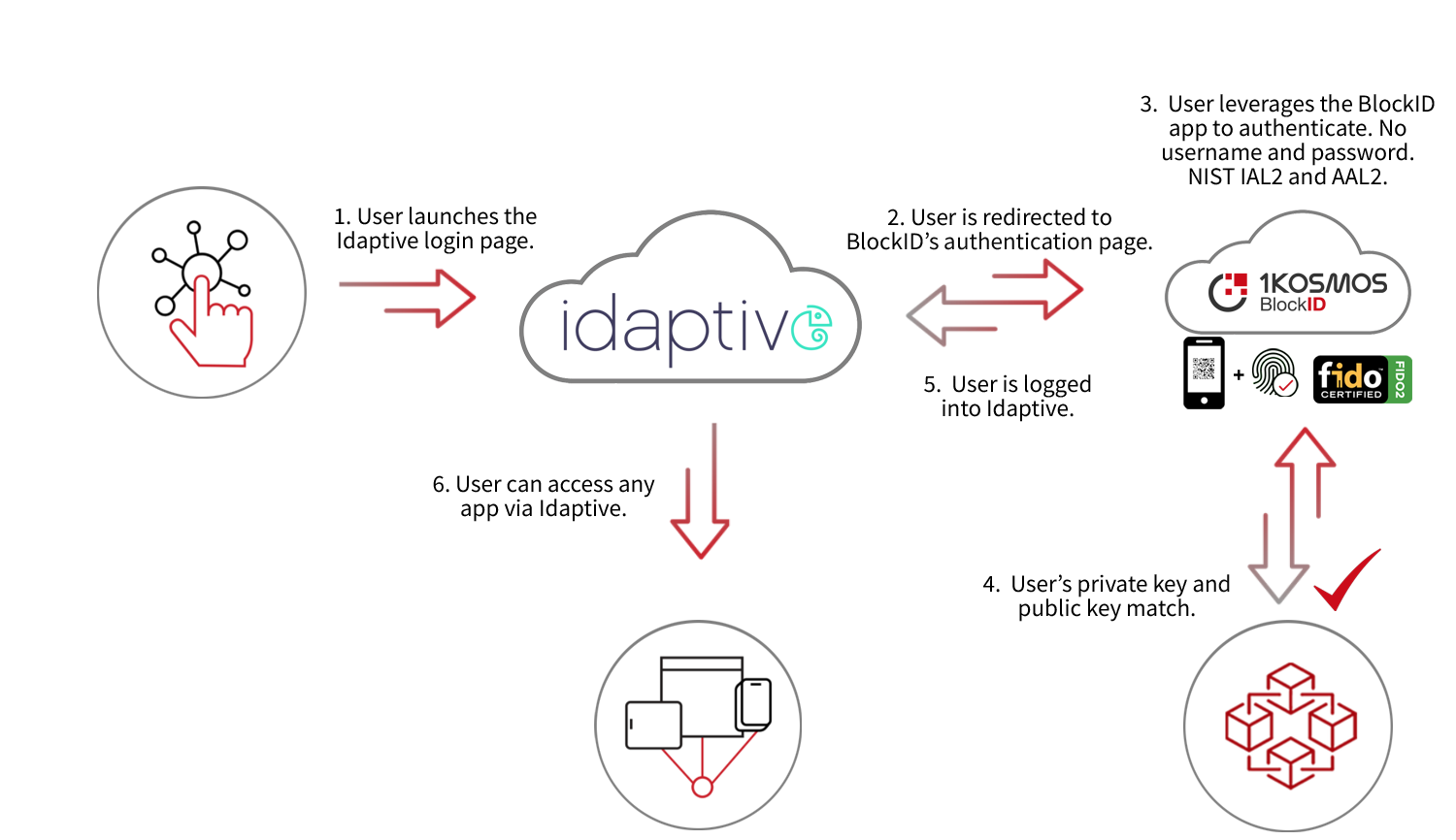 By adding Strong Identity to Idaptive′s authentication system, organizations can prove the identity of the user who’s actually authenticating. This removes the need for an Idaptive username, password, and separate 2FA process which means your downstream SSO connected apps are now as strong as the new, identity-based login. Furthermore, applications such as Windows and MAC login can also be covered, which represent a critical component for organizations.