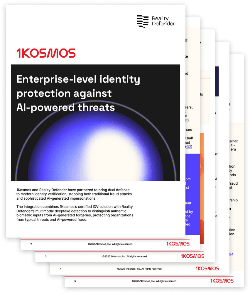 The 1Kosmos + Reality Defender integration embeds real-time deepfake detection into 1Kosmos identity verification and LiveID login workflows.